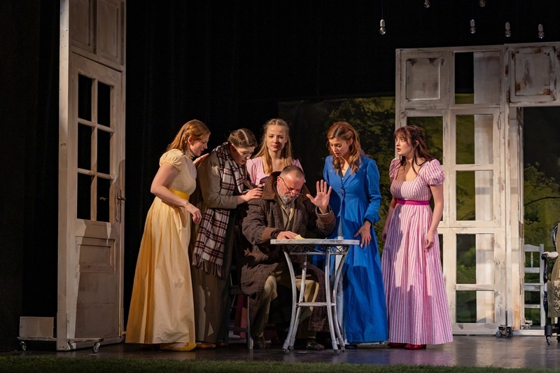 A darab látványvilága is különleges, a díszlet gurulós ajtó- és ablakkeretekből épül fel, és jelenetről jelenetre változik a színpadkép. A mozgó falak megteremtik Jane Austen vidéki Angliájának varázslatát. „A darab egy civil szituációval indul. Megérkezik a társulat próbálni, de csupán jelzés díszletben. Ebben partner volt Tihanyi Ildi díszlet- és jelmeztervező, mert nagy kihívásnak érezte, hogy hogy fogjuk megteremteni a regényben szereplő rengeteg helyszínt. Mániám szinte, hogy egy-egy gesztus sokszor többet ér, mint a monumentális változások. Nem illúziót teremtünk az előadásban, hanem játékosságot. Egyik jelenetből úszunk át a másikba azáltal, hogy a díszletek mozognak, mintha forgószínpaddal dolgoznánk. Bodor Johanna koreográfus nagy segítségemre volt a díszletmozgások megtervezésében is hogy a darab helyszínváltozásait és szerkezetét elegánsan és a dramaturgiát szolgálva rakjuk össze.”
